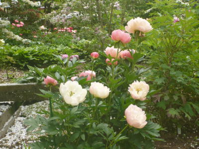 peonies) are cultivated in this garden.