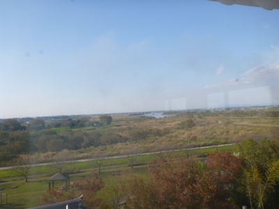 An entrance and a view of the Tone River from the observation room.