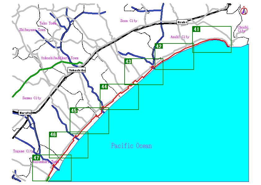 Map of North Kujukuri Beach Cycling Route